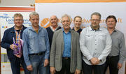 Das Bild zeigt den Vorstand der Maler- und Lackierer-Innung Grafschaft Bentheim mit dem ehemaligen und dem neuen Obermeister. Von links: Edgar Ennen, Günter Meinderink, Wolfgang van Remmerden, Manfred Klinke, Uwe Niehaus, Thomas Sobott sowie Ingo Poppenborg.