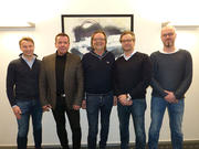 Der Vorstand der Metall-Innung Grafschaft Bentheim, von links: Lehrlingswart André Pötter, stellv. Obermeister Dietmar Krings, Obermeister Heinz-Geert Peters, Gastgeber Peter Spitzer sowie Beisitzer Kai Krüger. Es fehlt Beisitzer Thomas Lindner.