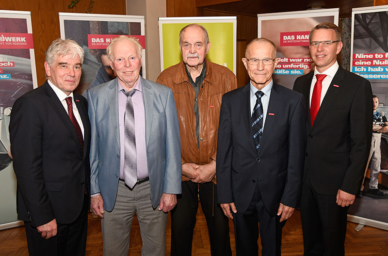 „Mit Ihnen sitzt auch ein Stück Zeit- und Wirtschaftsgeschichte der Region in diesem Saal. Das Handwerk hat zwar oftmals noch den sprichwörtlichen goldenen Boden, doch es hat, wie alle Wirtschaftszweige, nicht nur rosige Zeiten erlebt“, so der Kammerpräsident in seiner Laudatio, in der er insbesondere die Leistungen der damaligen jungen Führungskräfte des Handwerks würdigte. Einen besonderen Dank sprach der Kammerpräsident den vielen Ehepartnern aus, die all die Jahre das Lebenswerk des Partners unterstützt und ihm zur Seite gestanden haben.