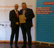 Nordhorn. Der Präsident der Handwerkskammer Osnabrück-Emsland-Grafschaft Bentheim, Peter Voss, zeichnete während der Delegiertenversammlung in der Kreishandwerkerschaft Grafschaft Bentheim in Nordhorn den Obermeister der Sanitär-Innung Grafschaft Bentheim mit der Goldenen Ehrennadel der Handwerkskammer aus.